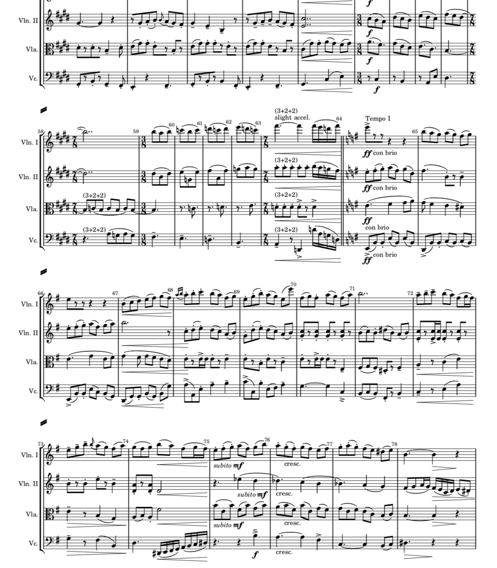 Greek Dance, for string quartet. 2 minutes. (2002) Performed by the McKinley String Quartet on April 14, 2013, at Holy Cross Lutheran in Cypress, CA. Appears on the 2013 album, “A Personal Echo.”