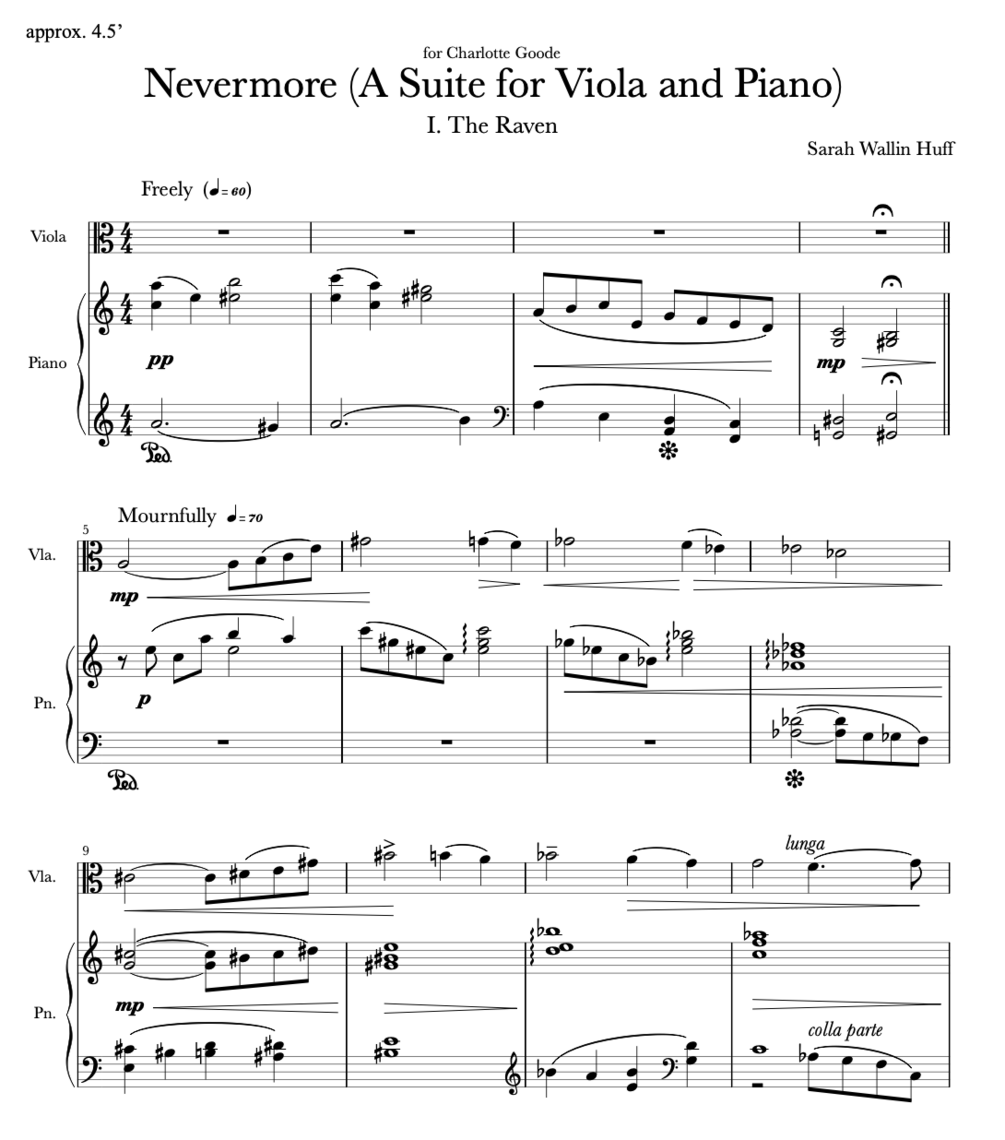 Nevermore, for viola and piano. 11-12 minutes. Composed for Charlotte Goode. (2019-2021)