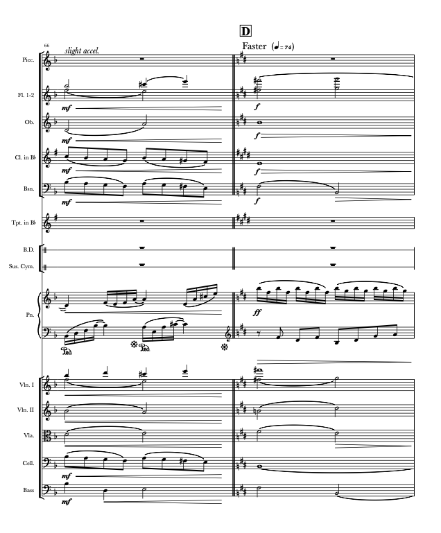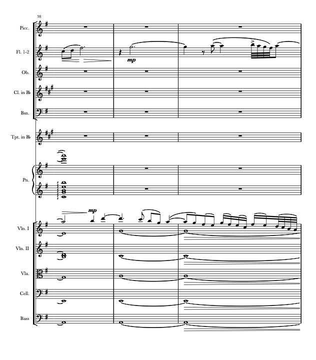 - Strings (vln 1 [including prominent solo part], vln 2, val, cello, bass)