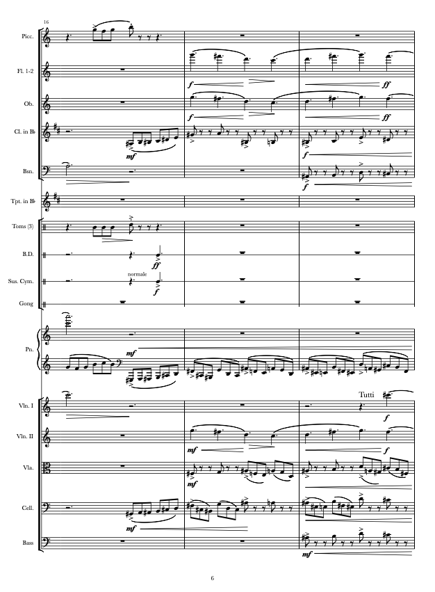 - 4 percussionists (concert toms, sus. cymbal, bass drum, gong)