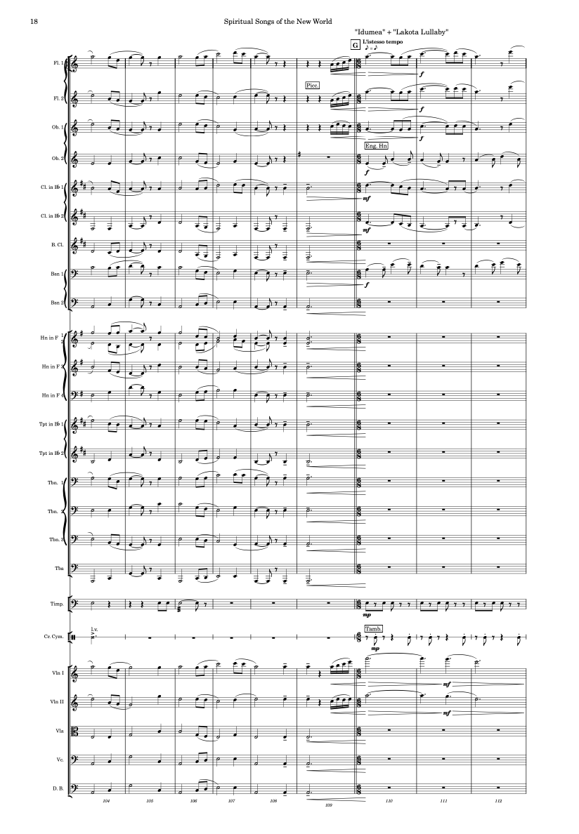 Certain musical patterns are shared among all of humanity, transcending geographical and temporal boundaries. This brief orchestral suite of early spiritual songs originating from the North American continent exemplifies this remarkable unity. Whether it be the music of indigenous peoples displaced by European colonists, the religious songs adapted from folk songs of European origins, the poignant spirituals of the enslaved forcibly brought to America’s shores, or the hymns sung by impoverished rural Southerners, humanity expresses hope through their shared language of music. Featuring the traditional songs “Lakota Lullaby”, “Wayfaring Stranger”, “I Wade the Water to My Knees”, “Wondrous Love”, and “Idumea”, this musical journey illustrates the striking commonalities shared in the music of our diverse heritages.